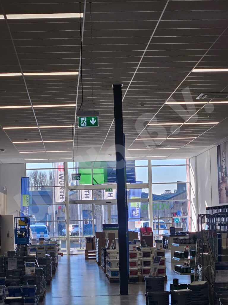 Daarnaast zijn meerdere nooduitgangsborden geplaatst op strategische plekken in de winkel. Dankzij een slimme plaatsing zijn deze ook bij rookontwikkeling of uitval van het hoofdlicht duidelijk zichtbaar.